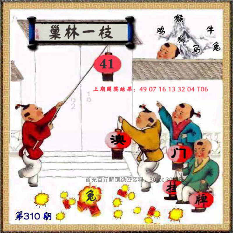 | 310期封金挂印:【巢林一枝】开:虎16 解:原指鹪鹩筑巢仅需占用一根树枝,后引申为比喻人安守本分、不贪求多余之物 解:比喻人安守本分、不贪求多余之物解猪狗猴牛虎羊,挂:41 爆:兔 七肖:兔牛猪狗猴虎羊 |